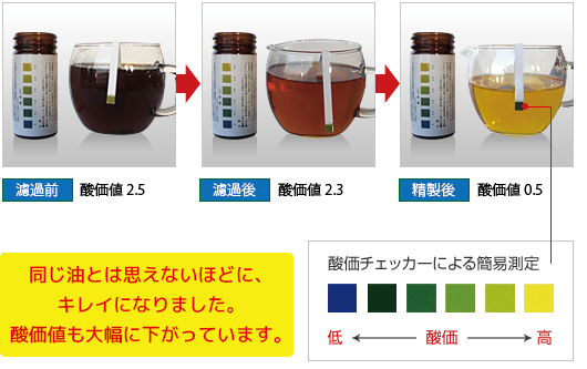 酸価・カルボニル価が下がり色もキレイになります。